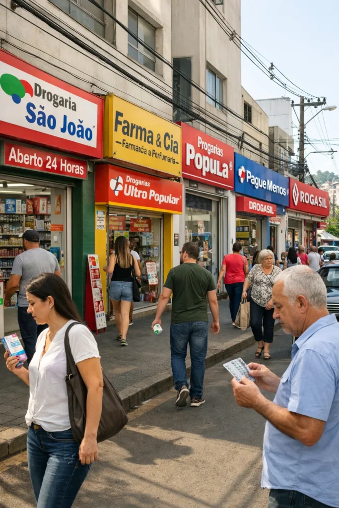 Quem caminha pelas cidades brasileiras percebe um padrão difícil de ignorar: farmácias aparecem em praticamente todas as esquinas e muitas vezes lado a lado. Esse fenômeno não se restringe às